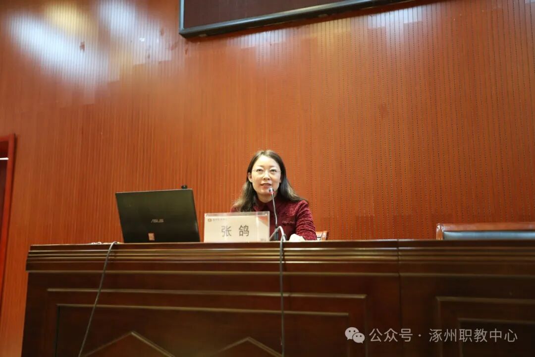 涿州职教中心名班主任工作室主持人、教务处副主任兰玉萍做了《智慧沟通 助力成长》的专题讲座。讲座聚焦亲子沟通,分析了职教学生的成长特点与常见问题,分享了优秀职教学生家庭教育的成功经验,并与家长进行了积极的互动。
