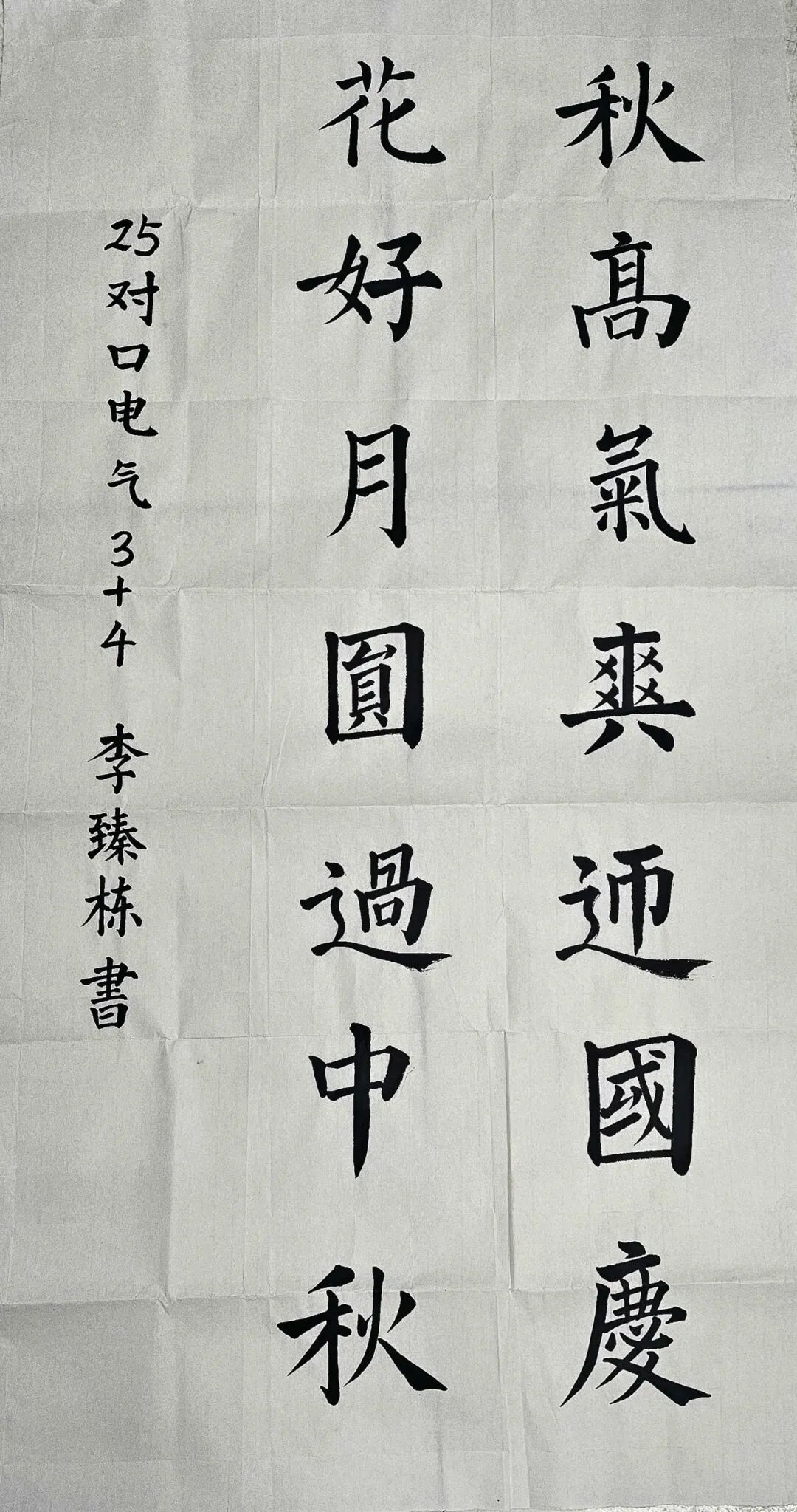 23园林班李洋、25级对口电气3+4班李臻栋、23财会二班赵恩菥、25旅游一班张鑫洋以中秋为主题,展示了硬笔、软笔书法优秀作品。