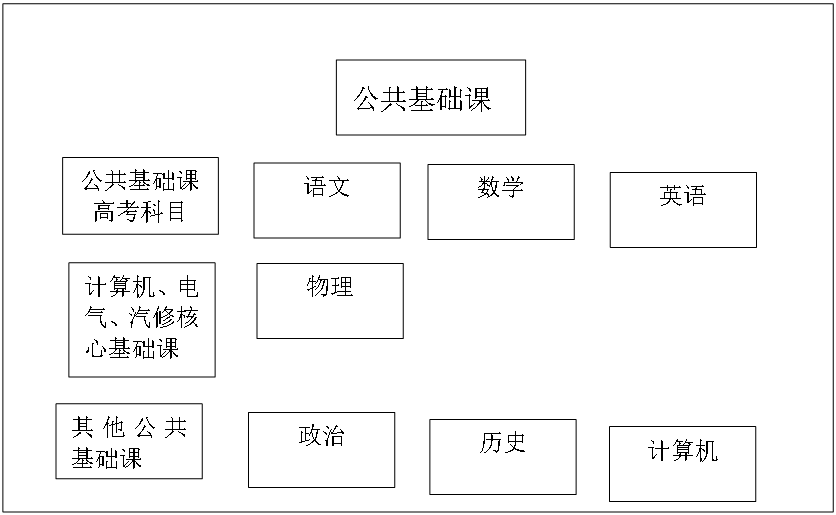 公共基础课包括语文、数学、英语三科高考必考科目和物理、政治、历史、体育。