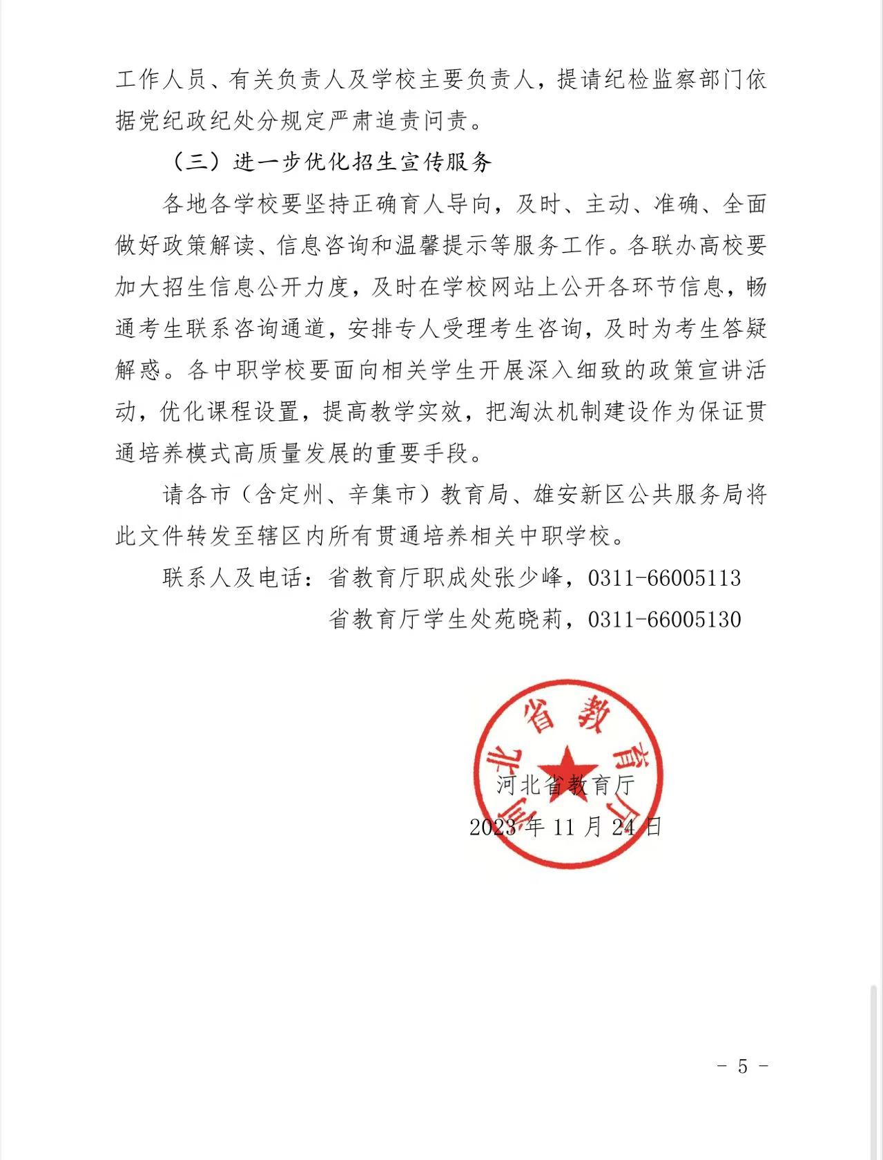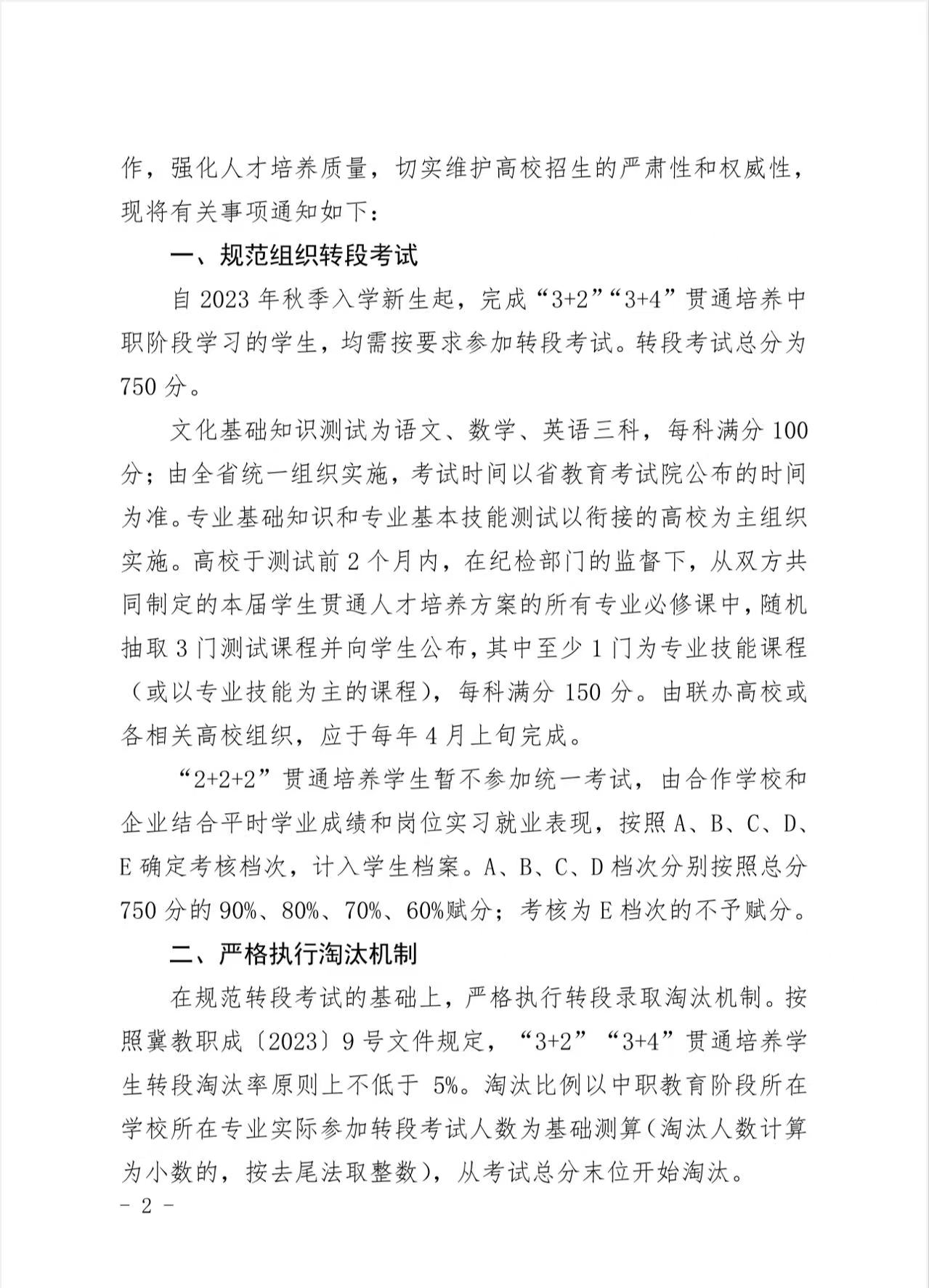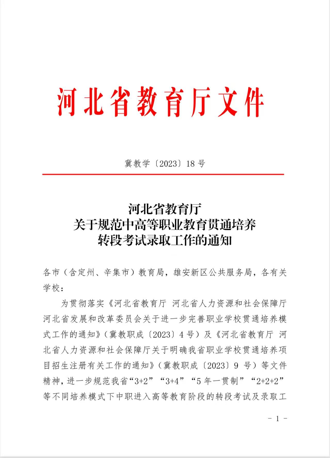 【3+4通知】河北省教育厅关于规范中等职业教育贯通培养转段考试录取工作的通知